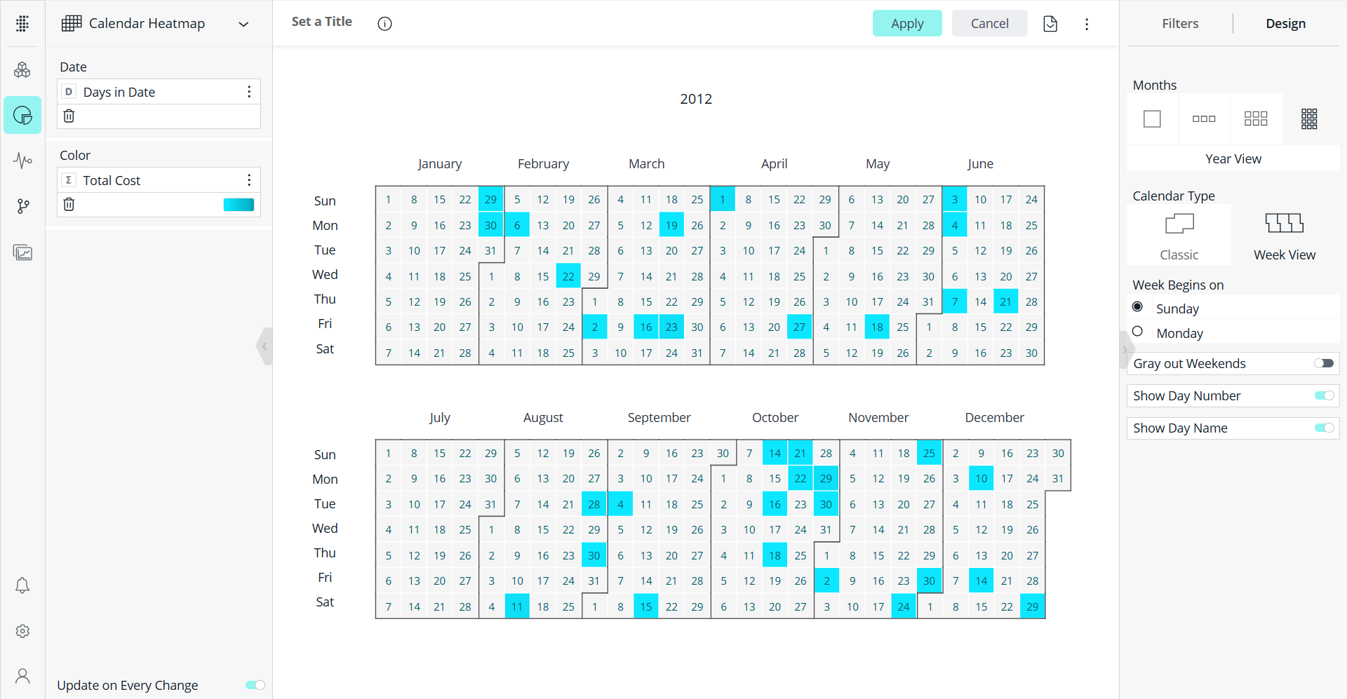 Fine-tune the appearance of the Calendar Heatmap widget, using the following tools.