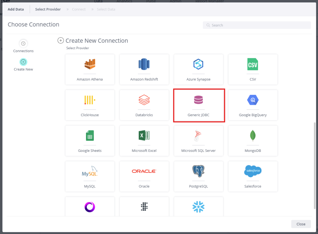 Sisense provides a generic Java Database Connectivity (JDBC) connector that you can configure to import data from a JDBC-supported source, for example, Postgres.