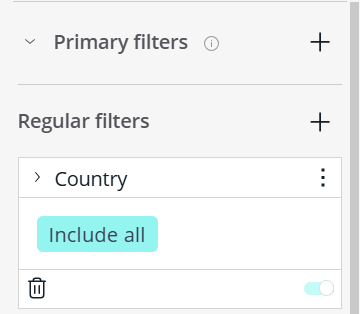 Once the feature is enabled, the Primary filters section appears at the top of the Filters sidebar on the dashboard: