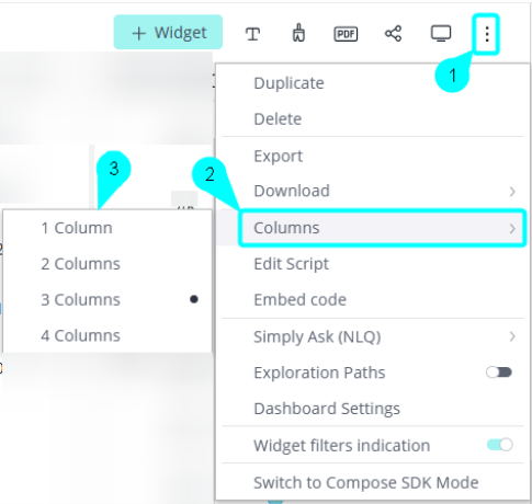 Click on the dashboard's menu, and select Columns and the number of columns.