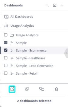 In List view, select all the relevant dashboards and click
