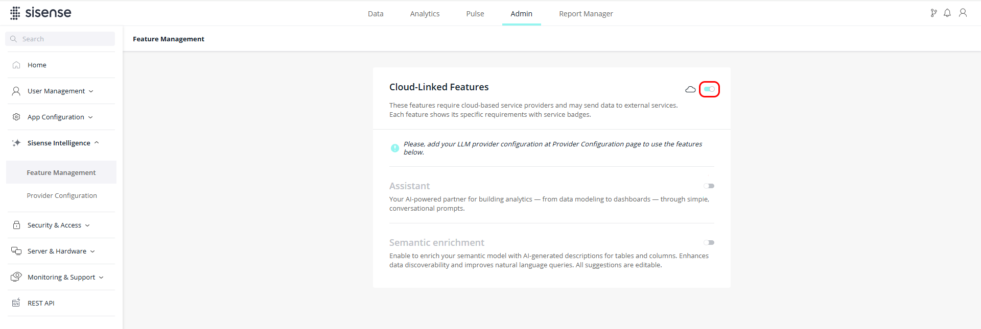 To enable Cloud-Linked Features, Sisense requires integration with a supported Large Language Model (LLM).