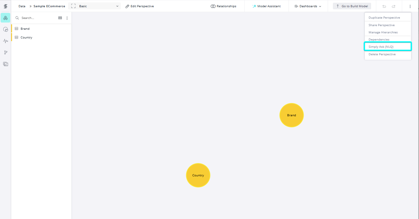For Perspectives, Simply Ask (NLQ) permissions must be set manually and are not inherited from the root model. They can be set from the Perspective’s three dot menu.