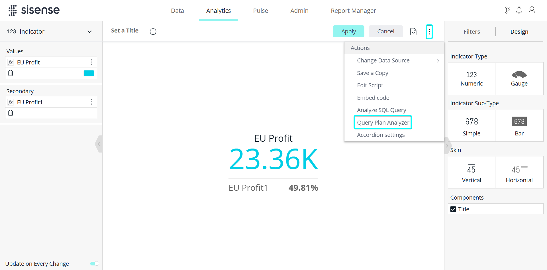 Click the widget's three-dot menu, and select Query Plan Analyzer.