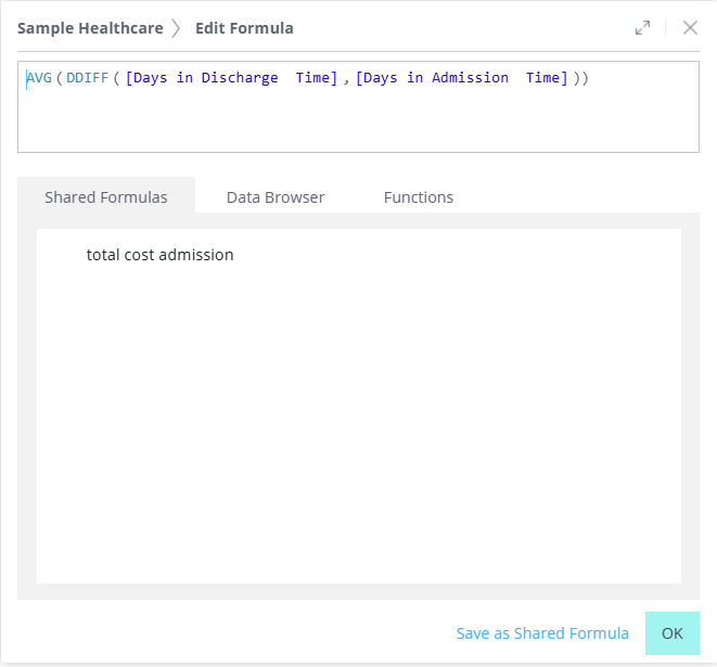 Clicking the Edit icon moves the focus to the formula so you can edit it. When you have finished editing the shared formula, click the Edit icon again to return the focus to the Shared Formulas tab.