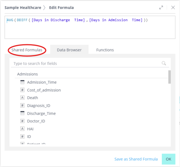 With Shared Formulas, dashboard and widget designers have the ability to create and store shared formulas that can be shared and reused across multiple widgets simultaneously, without the need to redefine the same formula for each widget. This not only saves time but also allows editing the formula in one place, thereby updating the formula in each of the places it is used automatically. There is no need to search for and replace each instance of the formula manually. Once a formula is saved as a shared formula, it automatically becomes public.