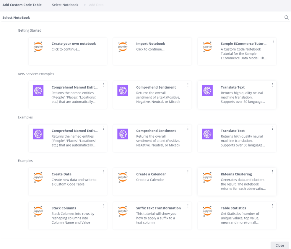 The Custom Code functionality enables you to use an integrated Jupyter Notebook to run Python code to transform and cleanse data inside of an ElastiCube as part of the build process.