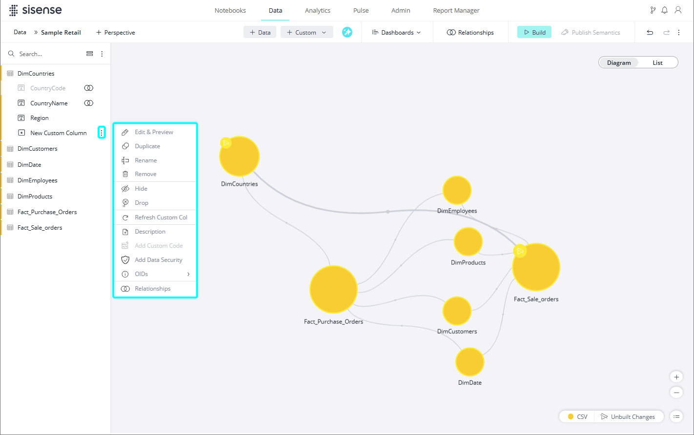 | Add Custom Column | Adds a custom column. |