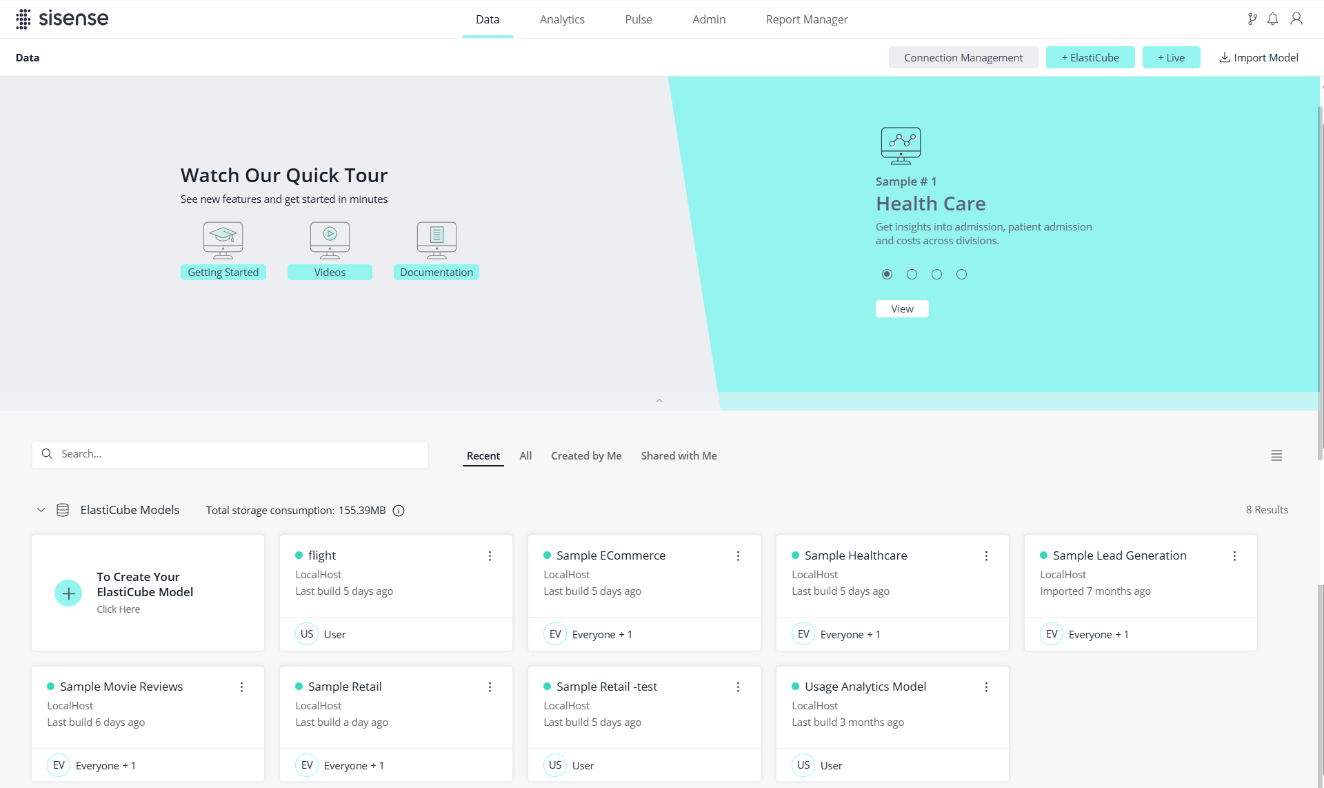 In the Analytics page, you can view all the dashboards that you own or that were shared with you.